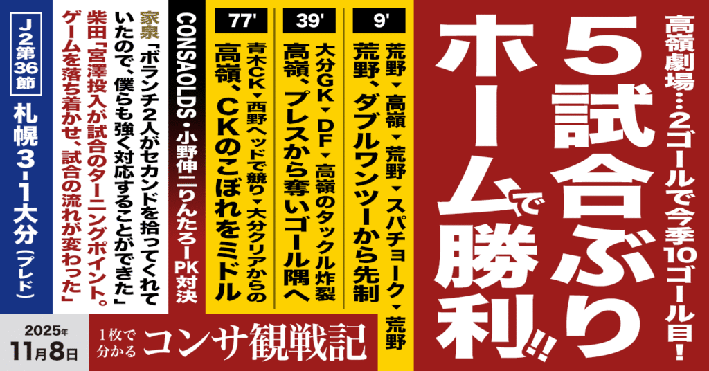 2024年、コンサドーレがあげたゴールは全63ゴール(J1:43ゴール、ルヴァン杯:11ゴール、天皇 […]