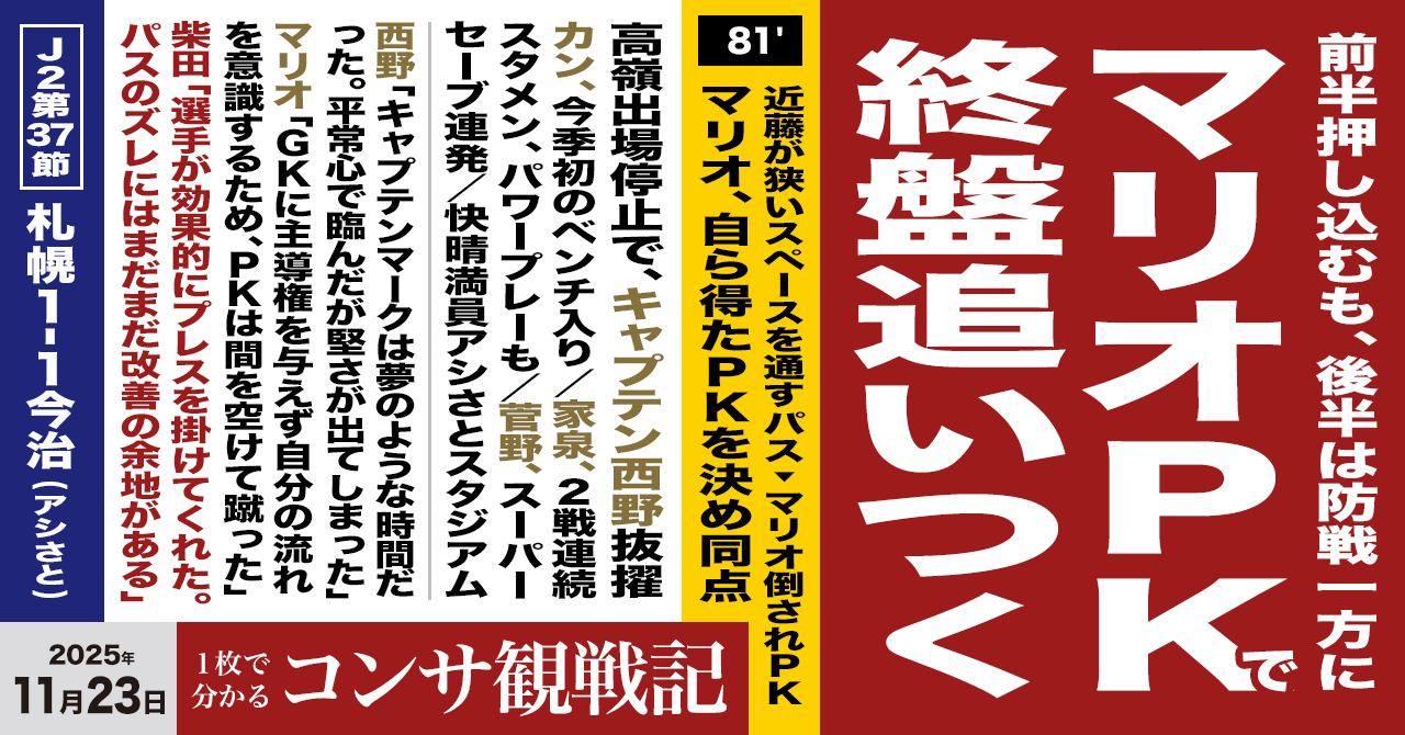 - 札幌が苦手としているPKで敗戦の危機を救いました(ノムラッティ)