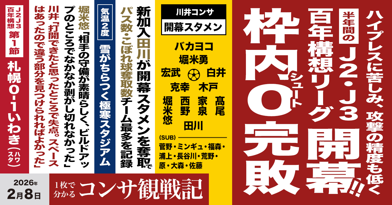 • 拙攻に助けられた最少失点負け。コンサの春は4月下旬からですW(大昔はサッカー選手)