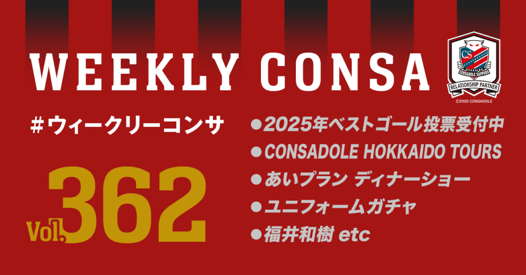みなさんの声を元にした、北海道コンサドーレ札幌の1週間の動きを追うマガジン「ウィークリーコンサ(非公式)」のvol.362です。