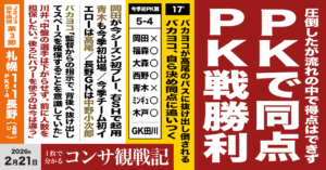 百年構想リーグは3試合目にして初勝利(PK戦だけど勝ちは勝ち)。毎年、開幕の直後は苦労するので、早めの連敗脱出に一安心というところでしょうか。